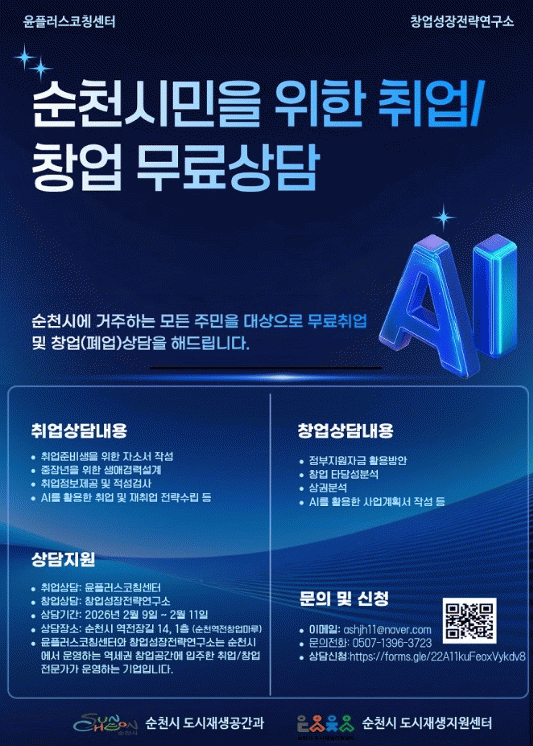 [¹Ìµð¾îÀü³² ÀÓ¼º¿Ï ±âÀÚ]¼øÃµ½Ã´Â ¼øÃµ¿ªÀü â¾÷¸¶·ç(µµ½ÃÀç»ý °ÅÁ¡½Ã¼³)¿¡ ÀÔÁÖÇÑ Ã¢¾÷ÄÁ¼³ÆÃ Àü¹®±â¾÷ ÁÖ°üÀ¸·Î ¡®Ãë¾÷¡¤Ã¢¾÷ ¹«·á»ó´ã¡¯À» ÁøÇàÇÒ ¿¹Á¤ÀÌ´Ù. À̹ø »ó´ãÀº ¿À´Â 9ÀϺÎÅÍ 11ÀϱîÁö 3Àϰ£, ¼øÃµ¿ªÀü â¾÷¸¶·ç(¿ªÀüÀ屿 ¡¦