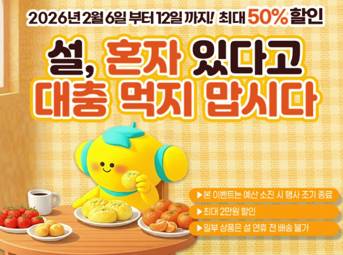 [¹Ìµð¾îÀü³² Á¦°¥´ëÁ¾ ±âÀÚ]°íÈﱺÀÌ ¿î¿µÇÏ´Â ¿Â¶óÀÎ ³ó¼öÃàÆ¯»ê¹° ¼îÇθô °íÈï¸ôÀº ¼³ ¿¬ÈÞ ±â°£ È¥ÀÚ ¸íÀýÀ» º¸³»´Â 1ÀÎ °¡±¸¿Í °£ÆíÇϸ鼵µ Á¦´ë·Î µÈ ½Ä»ç¸¦ ¿øÇÏ´Â ¼ÒºñÀÚ¸¦ À§ÇØ ¿À´Â 2¿ù 6ÀϺÎÅÍ 12ÀϱîÁö ¡®È¥ÀÚ ÀÖ´Ù°í ´ëÃæ ¸Ô¡¦