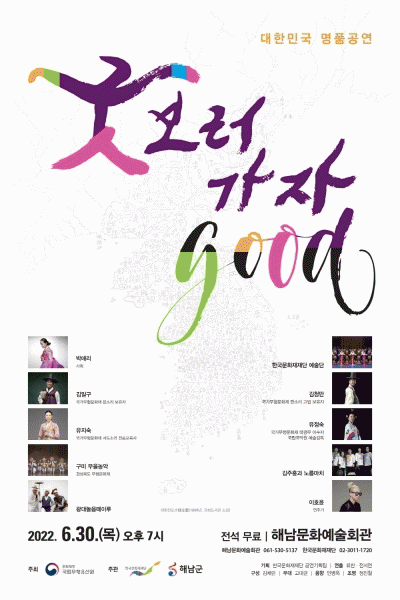 [¹Ìµð¾îÀü³² À±º¸Çö ±âÀÚ] ÇØ³²±ºÀº ´ëÇѹα¹ ¸íǰ ±¹¾Ç°ø¿¬¡®±ÂGOOD º¸·¯°¡ÀÚ¡¯¸¦ ¿À´Â 30ÀÏ ¿ÀÈÄ 7½Ã ÇØ³²¹®È¿¹¼úȸ°ü ´ë°ø¿¬Àå¿¡¼ °³ÃÖÇÑ´Ù. ¡®±Âº¸·¯°¡ÀÚ¡¯´Â ±¹¾ÇÀÎ ¹Ú¾Ö¸®ÀÇ »çȸ·Î ±¹°¡¹«Çü¹®ÈÀç¿Í Áö¿ªÀüÅ뿹¼úÀÎ µî ´ëÇѹΡ¦