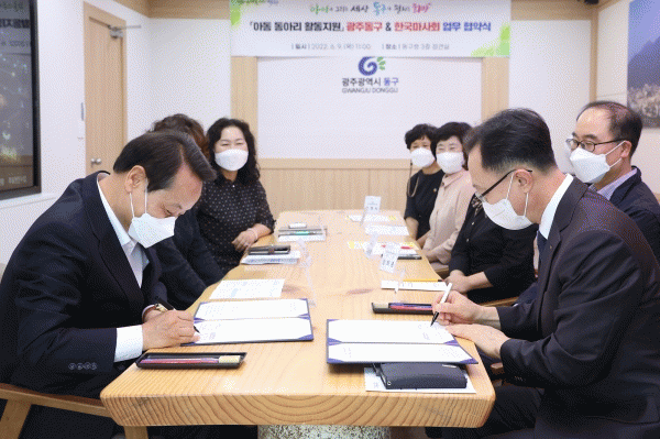 [¹Ìµð¾îÀü³² ±èÁ¤¿ì ±âÀÚ] ±¤ÁÖ µ¿±¸´Â Áö³ 9ÀÏ Çѱ¹¸¶»çȸ ±¤ÁÖÁö»ç¿Í ¾Æµ¿ µ¿¾Æ¸® Ȱµ¿ Áö¿øÀ» À§ÇÑ ¾÷¹« Çù¾àÀ» ü°áÇß´Ù°í ¹àÇû´Ù. À̳¯ Çù¾à½ÄÀº ÀÓÅà µ¿±¸Ã»Àå°ú Á¤Áö·Ã Çѱ¹¸¶»çȸ ±¤ÁÖÁö»çÀå, Áö¿ª¾Æµ¿¼¾ÅÍÀå µîÀÌ Âü¼®ÇÑ °¡¿î¡¦