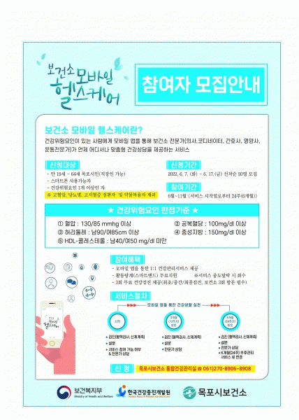 [¹Ìµð¾îÀü³² Á¦°¥´ëÁ¾ ±âÀÚ] ¸ñÆ÷½Ãº¸°Ç¼Ò°¡ 6¿ùºÎÅÍ ¡®¸ð¹ÙÀÏ ÇコÄÉ¾î »ç¾÷¡¯À» ½Ç½ÃÇÑ´Ù. ¸ñÆ÷½Ãº¸°Ç¼Ò´Â Áö³ÇØ 10¿ù º¸°Çº¹ÁöºÎ¿Í Çѱ¹°Ç°ÁõÁø°³¹ß¿øÀÌ ÁÖ°üÇÏ´Â ¡®¸ð¹ÙÀÏ ÇコÄÉ¾î »ç¾÷¡¯ÀÇ ½Å±Ô Âü¿© º¸°Ç¼Ò·Î ¼±Á¤µÆ´Ù. ¡®¸ð¹Ù¡¦