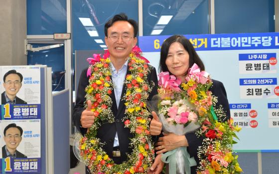 [¹Ìµð¾îÀü³² Á¦°¥´ëÁ¾ ±âÀÚ] Á¦ 8ȸ Àü±¹µ¿½ÃÁö¹æ¼±°Å ³ªÁÖ½ÃÀå ÃÖÁ¾ °³Ç¥°á°ú À±º´Å ´õºÒ¾î¹ÎÁÖ´ç È帰¡ µæÇ¥À² 58.81%·Î °ÀÎ±Ô ¹«¼Ò¼Ó È常¦ ¾Õ¼ ´ç¼±À» È®Á¤Áö¾ú´Ù. À± ´ç¼±ÀÚ´Â ¡°À̹ø ½Â¸®´Â Á¸°æÇϰí Çö¸íÇϽгªÁֽùΠ¿©¡¦