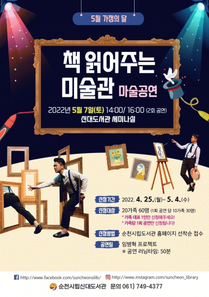 [¹Ìµð¾îÀü³² ÀÓ¼º¿Ï ±âÀÚ] ¼øÃµ½Ã´Â 5¿ù °¡Á¤ÀÇ ´ÞÀ» ¸Â¾Æ ¿À´Â 5¿ù 7ÀÏ ½Å´ëµµ¼°ü¿¡¼ ¿Â °¡Á·ÀÌ Áñ±æ ¼ö ÀÖ´Â ¡®Ã¥ ÀоîÁÖ´Â ¹Ì¼ú°ü¡¯¸¶¼ú°ø¿¬À» °³ÃÖÇÑ´Ù. À̹ø Çà»ç´Â ±×¸²Ã¥ ¡®±î¸¸ Å©·¹ÆÄ½º¡¯¸¦ ¸ðƼºê·Î ÇÑ ¹Ì¼ú°ü ÄܼÁÆ®ÀÇ Ã¢ÀÛ¡¦