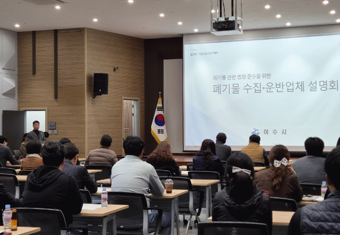 [¹Ìµð¾îÀü³² ÀüÇü¼º ±âÀÚ]¿©¼ö½Ã°¡ Áö³ 24ÀÏ ¿©¼ö»ó°øÈ¸ÀÇ¼Ò È¸Àǽǿ¡¼ °ü³» Æó±â¹° ¼öÁý¿î¹Ý¾÷ü¸¦ ´ë»óÀ¸·Î ¡®Æó±â¹° °ü·Ã ¹ý·É Áؼö»çÇ× ¹× À§¹Ý»ç·Ê ¾È³» ¼³¸íȸ¡¯¸¦ °³ÃÖÇß´Ù°í ¹àÇû´Ù. À̹ø ¼³¸íȸ´Â ÃÖ±Ù Æó±â¹° ¿î¹Ý °úÁ¤¿¡¼¡¦