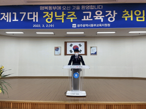 [¹Ìµð¾îÀü³² Á¦°¥´ëÁ¾ ±âÀÚ] ±¤ÁÖµ¿ºÎ±³À°Áö¿øÃ» Á¦17´ë Á¤³«ÁÖ ±³À°ÀåÀÌ 2ÀÏ ÃëÀÓ½ÄÀ» °®°í º»°ÝÀûÀÎ ¾÷¹«¸¦ ½ÃÀÛÇß´Ù. 2ÀÏ µ¿ºÎÁö¿øÃ»¿¡ µû¸£¸é ÃëÀÓ½ÄÀº ¹æ¿ª ¼öÄ¢À» ÁؼöÇÏ¸é¼ ´ëȸÀǽǿ¡¼ Á÷¿ø ÀϺΰ¡ Âü¼®ÇÑ °¡¿îµ¥ ÁøÇàµÆ´Ù. ¡¦
