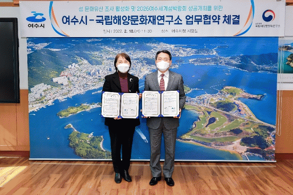 [¹Ìµð¾îÀü³² ÀüÇü¼º ±âÀÚ] ¿©¼ö½Ã´Â 18ÀÏ ½ÃÀå½Ç¿¡¼ ±¹¸³Çؾ繮ÈÀ翬±¸¼Ò¿Í ¡®¼¶ ¹®ÈÀ¯»ê Á¶»ç Ȱ¼ºÈ ¹× 2026¿©¼ö¼¼°è¼¶¹Ú¶÷ȸ ¼º°ø°³ÃÖ¸¦ À§ÇÑ ¾÷¹«Çù¾à¡¯À» ü°áÇß´Ù°í ¹àÇû´Ù. À̳¯ Çù¾à¿¡ µû¶ó µÎ ±â°üÀº ¼¶ ¹®ÈÀ¯»ê¿¡ ´ëÇÑ Á¤¡¦