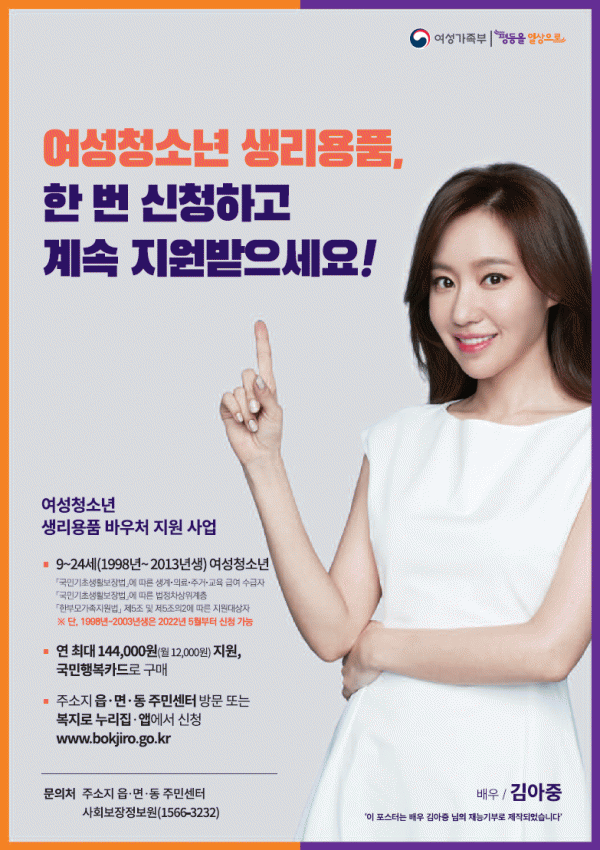 [¹Ìµð¾îÀü³² ÀüÇü¼º ±âÀÚ] ¿©¼ö½Ã°¡ ¿©¼ºÃ»¼Ò³âÀÇ °Ç°ÇÑ ¼ºÀåÀ» À§ÇØ º¸°ÇÀ§»ý¹°Ç° Áö¿øÀ» È®´ëÇÑ´Ù°í ¹àÇû´Ù. ½Ã¿¡ µû¸£¸é ±âÁ¸ Áö¿ø ´ë»óÀº ¸¸ 11~18¼¼¿´À¸³ª, 2022³âºÎÅÍ ¸¸ 9¼¼~24¼¼·Î È®´ëµÇ°í Áö¿ø ±Ý¾×µµ ¿ù 11,500¿ø¿¡¼ ¿ù 12¡¦