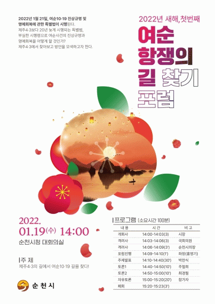 [¹Ìµð¾îÀü³² ÀÓ¼º¿Ï ±âÀÚ] ¼øÃµ½Ã´Â ¿©¼ø»ç°Ç Ưº°¹ý ½ÃÇàÀ» ¾ÕµÎ°í ¿À´Â 19ÀÏ ¿ÀÈÄ 2½Ã ½Ãû ´ëȸÀǽǿ¡¼ ¡®Á¦ÁÖ4¡¤3ÀÇ ±æ¿¡¼ ¿©¼ø10¡¤19ÀÇ ±æÀ» ã´Ù¡¯¶ó´Â ÁÖÁ¦·Î Æ÷·³À» °³ÃÖÇÑ´Ù. À̹ø Æ÷·³Àº ¹ÚÂù½Ä Á¦ÁÖ°¡Ä¡ °øµ¿´ëÇ¥ÀÇ ÁÖÁ¦¹ß¡¦