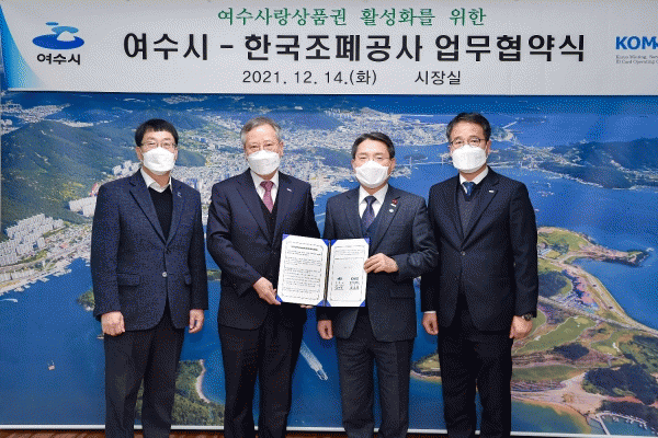 [¹Ìµð¾îÀü³² ÀüÇü¼º ±âÀÚ] ¿©¼ö½Ã¿Í Çѱ¹Á¶Æó°ø»ç°¡ Áö³ 14ÀÏ ¿©¼ö½Ãû ½ÃÀå½Ç¿¡¼ ¡®¿©¼ö»ç¶û»óǰ±Ç Ȱ¼ºÈ¸¦ À§ÇÑ ¾÷¹«Çù¾à¡¯À» ü°áÇß´Ù. Çù¾à½Ä¿¡¼ ±Ç¿ÀºÀ ¿©¼ö½ÃÀå°ú ¹ÝÀå½Ä Çѱ¹Á¶Æó°ø»ç »çÀå µî °ü°èÀÚ°¡ Âü¼®ÇÑ °¡¿îµ¥ ¾ÕÀ¸·Î¡¦