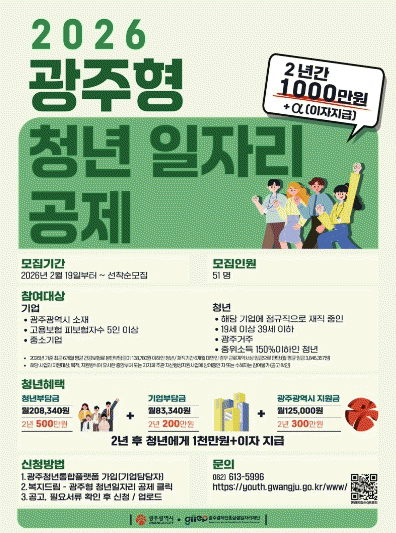 [¹Ìµð¾îÀü³² Á¦°¥´ëÁ¾ ±âÀÚ]±¤ÁÖ±¤¿ª½Ã´Â ±¤ÁÖû³âÀÌ 2³â°£ 500¸¸¿øÀ» ¸ðÀ¸¸é ±â¾÷°ú ½Ã°¡ 500¸¸¿øÀ» ÇÔ²² Àû¸³ÇØ 1000¸¸¿øÀ» ¸¸µé¾îÁÖ´Â ¡®±¤ÁÖÇü û³âÀÏÀÚ¸® °øÁ¦ »ç¾÷¡¯ Âü¿©ÀÚ¸¦ 19ÀϺÎÅÍ ¸ðÁýÇÑ´Ù. ¡®±¤ÁÖÇü û³âÀÏÀÚ¸® °øÁ¦ »ç¾÷¡¯¡¦