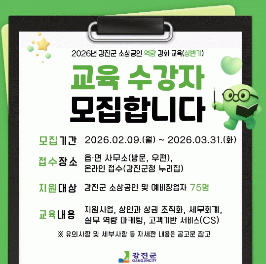 [¹Ìµð¾îÀü³² °í±Ô¼® ±âÀÚ]°Áø±ºÀÌ Áö¿ª ¼Ò»ó°øÀΰú ¿¹ºñâ¾÷ÀÚ¸¦ À§ÇÑ ¡®2026³â ¼Ò»ó°øÀÎ ¿ª·® °È ±³À°¡¯À» ¿î¿µÇÑ´Ù. ±³À° ³»¿ëÀº ¼Ò»ó°øÀο¡°Ô ²À ÇÊ¿äÇÑ °Íµé·Î ±¸¼ºµÅ ÀÖ´Ù. °ø°ø±â°ü Áö¿ø»ç¾÷, »óÀΰú »ó±Ç Á¶Á÷È ¹æ¹ý, ¼Ò»ó°ø¡¦