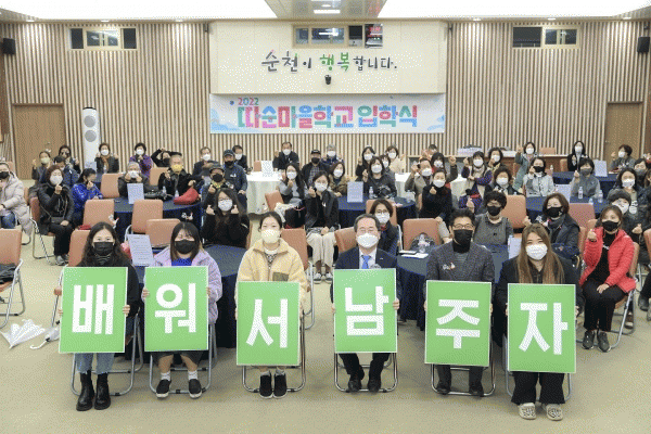 [¹Ìµð¾îÀü³² ÀÓ¼º¿Ï ±âÀÚ] ¼øÃµ½Ã°¡ Áö³ 11¿ù 30ÀÏ ½Ãû ´ëȸÀǽǿ¡¼ ½Ã¹Î 100¿©¸í°ú ÇÔ²² µû¼ø¸¶À»Çб³ ÀÔÇнÄÀ» °¡Á³´Ù. µû¼ø¸¶À»Çб³´Â ¸¶À»°øµ¿Ã¼ÀÇ È¸º¹°ú Ȱ¼ºÈ¸¦ À§ÇØ Áö¿øÇÏ´Â ¼øÃµ½Ã ¸¶À»°øµ¿Ã¼ Áö¿ø »ç¾÷ÀÎ ¡®µû¼ø¸¶À» ¸¸µé¡¦