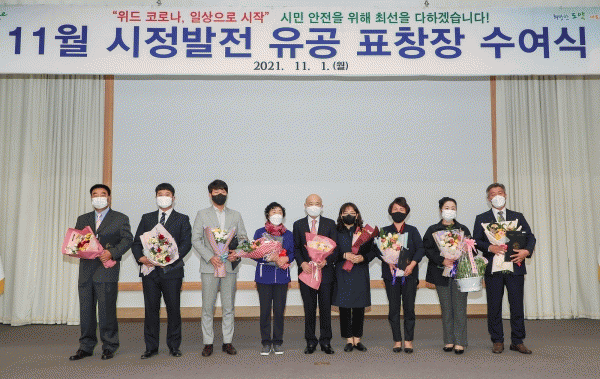 [¹Ìµð¾îÀü³² ÀÓ¼º¿Ï ±âÀÚ] ±¤¾ç½Ã´Â Áö³ 1ÀÏ ½Ãû ´ëȸÀǽǿ¡¼ 11¿ù ½ÃÁ¤¹ßÀü À¯°ø ǥâ ´ë»óÀÚ¿¡ ´ëÇÑ Àü¼ö¡¤¼ö¿©½ÄÀ» °¡Á³´Ù. Àü¼ö¡¤¼ö¿©½ÄÀº º¸°Çº¹ÁöºÎÀå°ü ǥâ 1¸í, µµÁö»ç ǥâ 2¸í, Áö¿ª»çȸ¿Í ½ÃÁ¤¹ßÀü¿¡ °øÇåÇÑ ½Ã¹Î ½ÃÀå Ç¥¡¦