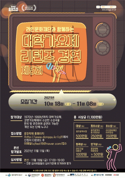 [¹Ìµð¾îÀü³² ±èÁ¤¿ì ±âÀÚ] ±¤ÁÖ µ¿±¸´Â ´ëÇѹα¹ ÃÖ´ë µµ½É ±æ°Å¸®¹®È¿¹¼ú ÃàÁ¦ÀÎ ¡®Á¦18ȸ Ãß¾ïÀÇ ÃæÀåÃàÁ¦~11.21./4Àϰ£)¡¯ÀÇ ¼º°øÀû °³ÃÖ¸¦ À§ÇØ ´Ùä·Î¿î °ø¿¬¡¤Ã¼Çè ÇÁ·Î±×·¥ÀÇ Âü°¡ÀÚ¸¦ ¸ðÁýÇÑ´Ù°í ¹àÇû´Ù. ¡®Çʸ§Ä«¸Þ¶ó IN ±¤ÁÖ¡¦