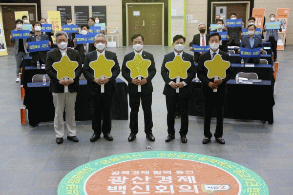 [¹Ìµð¾îÀü³² ±èÁ¤¿ì ±âÀÚ] Áö¿ª°æÁ¦ °Å¹ö³Í½ºÀÎ ±¤»ê°æÁ¦¹é½ÅȸÀǰ¡ Á¾±³°è Âü¿©¸¦ ¹ßÆÇ »ï¾Æ Áö¿ª°æÁ¦ Ȱ¼ºÈ¸¦ À§ÇØ ½Å¹ß ²öÀ» Á¶¿© ¸Ç´Ù. ±¤»ê±¸´Â 5ÀÏ ¿ÀÈÄ ±¸Ã» 7Ãþ À±»ó¿øÈ¦¿¡¼ ¡®±¤»ê°æÁ¦¹é½ÅȸÀÇ ½ÃÁð2 ¹ß´ë½Ä¡¯À» °³ÃÖÇß´Ù. ¡¦