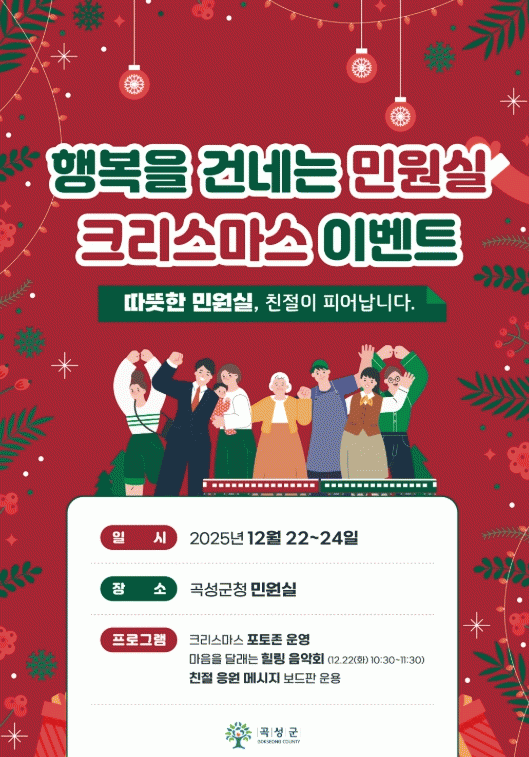 [¹Ìµð¾îÀü³² Á¦°¥´ëÁ¾ ±âÀÚ]Àü³² °î¼º±ºÀÌ ¿À´Â 22ÀϺÎÅÍ 24ÀϱîÁö 3ÀÏ µ¿¾È Å©¸®½º¸¶½º¸¦ ¸Â¾Æ ¡®ÇູÀ» °Ç³×´Â ¹Î¿ø½Ç Å©¸®½º¸¶½º À̺¥Æ®¡¯¸¦ ÃßÁøÇÑ´Ù°í 9ÀÏ ¹àÇû´Ù. À̹ø Çà»ç´Â ÁֹεéÀÌ ±ºÃ» ¹Î¿ø½ÇÀ» ¹æ¹®ÇÏ´Â ¼ø°£ µû¶æÇÔ°ú Áñ¡¦