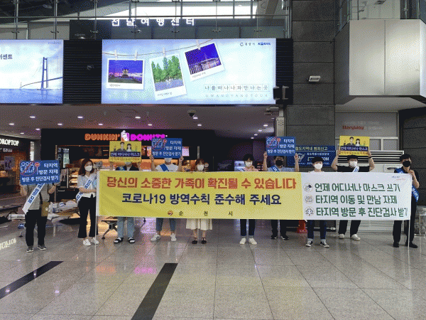 [¹Ìµð¾îÀü³² ÀÓ¼º¿Ï ±âÀÚ] ¼øÃµ½Ã´Â Áö³ 25ÀÏ ¼øÃµ¿ª¿¡¼ À̿밴À» ´ë»óÀ¸·Î À̵¿ÀÚÁ¦ ¹× ¼±Á¦Àû °Ë»ç, ¸¶½ºÅ© Âø¿ë µî Äڷγª19 È®»ê ´ëÀÀ °È¸¦ À§ÇØ Àü¶ó³²µµ¿Í ¹æ¿ªµ¿Âü ÇöÀå Ä·ÆäÀÎÀ» ½Ç½ÃÇß´Ù. À̹ø Ä·ÆäÀÎÀº Äڷγª19 4Â÷ À¯Çࡦ