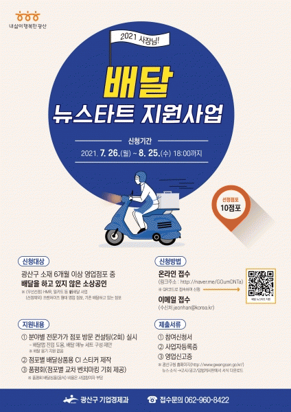 [¹Ìµð¾îÀü³² ±èÁ¤¿ì ±âÀÚ] ±¤ÁÖ ±¤»ê±¸°¡ °ñ¸ñ»ó±Ç ¼Ò»ó°øÀÎÀÌ ¹è´ÞÀ» ½ÃÀÛÇÒ ¼ö ÀÖµµ·Ï Áö¿øÇÏ´Â ¡®»çÀå´Ô ¹è´Þ ´º½ºÅ¸Æ® Áö¿ø»ç¾÷¡¯ Âü¿© Á¡Æ÷¸¦ ¿À´Â 8¿ù 25ÀϱîÁö ¸ðÁýÇÑ´Ù. ¡®»çÀå´Ô ¹è´Þ ´º½ºÅ¸Æ® Áö¿ø»ç¾÷¡¯Àº Æ÷½ºÆ®Äڷγª ½Ã´ë¡¦