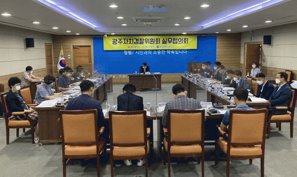 [¹Ìµð¾îÀü³² Á¦°¥´ëÁ¾ ±âÀÚ] ±¤ÁÖ±¤¿ª½Ã ÀÚÄ¡°æÂûÀ§¿øÈ¸´Â 21ÀÏ ½Ã, ±¤ÁÖ°æÂûû, ±¤ÁÖ±³À°Ã», À§¿øÈ¸ °ü°èÀÚ µîÀÌ Âü¼®ÇÑ °¡¿îµ¥ ¡®Á¦1Â÷ ±¤ÁÖÀÚÄ¡°æÂûÀ§¿øÈ¸ ½Ç¹«ÇùÀÇȸ¡¯¸¦ °³ÃÖÇß´Ù. À̳¯ ½Ç¹«ÇùÀÇȸ¿¡¼´Â ±¤ÁÖÀÚÄ¡°æÂûÁ¦ ÃßÁø°æ°ú¡¦