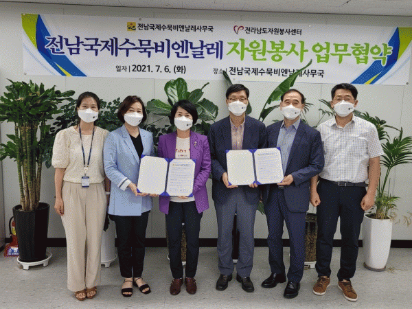 [¹Ìµð¾îÀü³² Á¦°¥´ëÁ¾ ±âÀÚ] Àü³²±¹Á¦¼ö¹¬ºñ¿£³¯·¹ »ç¹«±¹Àº 2021 Àü³²±¹Á¦¼ö¹¬ºñ¿£³¯·¹ÀÇ ¼º°ø °³ÃÖ¸¦ À§ÇØ Àü¶ó³²µµÀÚ¿øºÀ»ç¼¾ÅÍ¿Í ÀÚ¿øºÀ»ç ¸ðÁý ¹× Áö¿ø ¾÷¹«Çù¾àÀ» Çϰí Çù¾÷¿¡ µé¾î°¬´Ù°í ¹àÇû´Ù. Çù¾à¿¡ µû¶ó µÎ ±â°üÀº ¼ö¹¬ºñ¿£¡¦