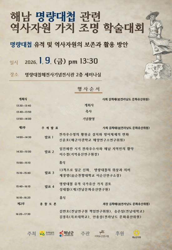[¹Ìµð¾îÀü³² Á¦°¥´ëÁ¾ ±âÀÚ]ÇØ³²±ºÀº ¿À´Â 9ÀÏ ÇØ³² ¿ì¼ö¿µ ¸í·®´ëÃ¸ÇØÀü»ç±â³äÀü½Ã°ü¿¡¼¡®Çس² ¸í·®´ëø °ü·Ã ¿ª»çÀÚ¿ø °¡Ä¡ Á¶¸í¡¯¸¦ ÁÖÁ¦·Î Çмú´ëȸ¸¦ °®´Â´Ù. À̹ø Çмú´ëȸ´Â ¸í·®´ëøÀÇ ¿ª»çÀû Àǹ̸¦ ÀçÁ¶¸íÇϰí, °ü·Ã À¯ÀûÀÇ ¡¦