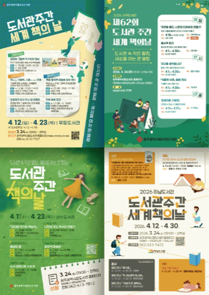 [¹Ìµð¾îÀü³² Á¦°¥´ëÁ¾ ±âÀÚ]±¤ÁÖ±¤¿ª½Ã ½Ã¸³µµ¼°ü(¹«µî¡¤»çÁ÷¡¤»ê¼ö¡¤Çϳ²)Àº ¡®µµ¼°ü ÁÖ°£¡¯(4¿ù 12¡18ÀÏ)°ú ¡®¼¼°è Ã¥ÀÇ ³¯¡¯(4¿ù 23ÀÏ)À» ¸Â¾Æ ´Ù¾çÇÑ µ¶¼¹®È Çà»ç¸¦ ¸¶·Ã, 3¿ù 24ÀϺÎÅÍ Âü°¡ ½ÅûÀ» ¹Þ´Â´Ù. ¸Å³â 4¿ù 12ÀÏÀº ¡®¡¦