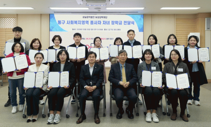 [¹Ìµð¾îÀü³² Á¦°¥´ëÁ¾ ±âÀÚ]±¤ÁÖ µ¿±¸´Â 23ÀÏ ±¸Ã» »óȲ½Ç¿¡¼ º¸¼ºÀåÇÐÀç´Ü(ÀÌ»çÀå ÀÌÈ¿µ) ÈÄ¿øÀ¸·Î ¡®»çȸº¹Áö¿µ¿ª Á¾»çÀÚ ÀÚ³à ÀåÇÐ±Ý Àü´Þ½Ä¡¯À» °³ÃÖÇß´Ù°í ¹àÇû´Ù. À̳¯ Àü´Þ½Ä¿¡´Â ÀåÇлýµéÀÇ Çо÷ ÀÏÁ¤À¸·Î ÀÎÇØ Àڳฦ ´ë½ÅÇØ¡¦