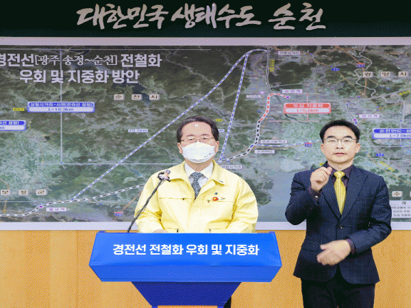 [¹Ìµð¾îÀü³² ÀüÇü¼º ±âÀÚ]Çã¼® ¼øÃµ½ÃÀåÀÌ 24ÀÏ ¿ÀÀü ¿µ»óºê¸®ÇÎÀ» ÅëÇØ °æÀü¼± ÀüÃ¶È »ç¾÷¿¡ ´ëÇÑ ÀÔÀåÀ» ¹ßÇ¥Çß´Ù. Çã¼® ½ÃÀåÀº ¡°°æÀü¼± °í¼ÓÀüÃ¶È »ç¾÷°ú ¼øÃµ-¸ñÆ÷°£ ³²ÇØ¾È Ã¶µµ°¡ °³ÅëµÇ¸é ºÎ»ê¡¤±¤ÁÖ µî »õ·Î¿î °ü±¤¼ö¿ä°¡ ⡦