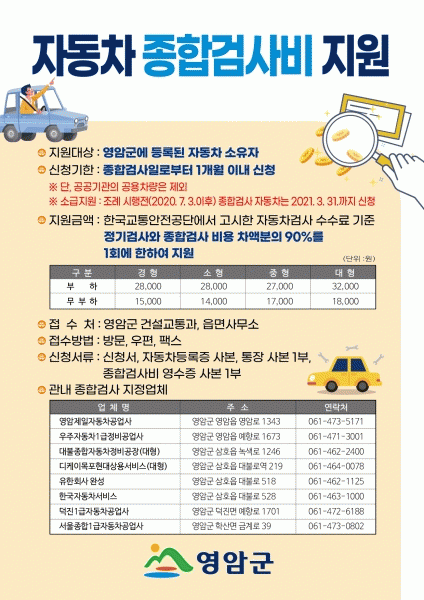 [¹Ìµð¾îÀü³² ±è±âö ±âÀÚ] ¿µ¾Ï±ºÀº ÀÚµ¿Â÷ Á¾ÇÕ°Ë»çºñ Áö¿ø±ÝÀ» 1Â÷ÀûÀ¸·Î 2¿ù 5ÀϱîÁö ½Åû¹Þ¾Æ 2¿ù 9ÀϱîÁö Áö¿øÇÒ ¿¹Á¤À̶ó°í ¹àÇû´Ù. ¡°´ë±â°ü¸®±Ç¿ªÀÇ ´ë±âȯ°æ°³¼±¿¡ °üÇÑ Æ¯º°¹ý¡±Á¦Á¤À¸·Î ȯ°æºÎ°¡ ´ëºÒ±¹°¡»ê¾÷´ÜÁö°¡ ÀÖ´Â ¿µ¡¦