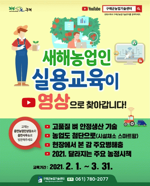 [¹Ìµð¾îÀü³² Á¦°¥´ëÁ¾ ±âÀÚ] ±¸·Ê±ºÀÌ ³ó¾÷ÀεéÀ» À§ÇÑ ³ó¾÷±â¼ú°ú ³óÁ¤½ÃÃ¥ ±³À°À» ¿Â¶óÀÎÀ¸·Î ½Ç½ÃÇÑ´Ù. ±ºÀº Áö¿ª³ó¾÷ÀÎÀ» ´ë»óÀ¸·Î Çٽɿµ³ó±â¼úÀ» º¸±ÞÇϰí ÇÊ¿äÇÑ Àü¹® ÀηÂÀ» ¾ç¼ºÇϱâ À§ÇÑ ¡®2021³â »õÇØ³ó¾÷ÀÎ ½Ç¿ë±³À°¡¯À» ÄÚ¡¦