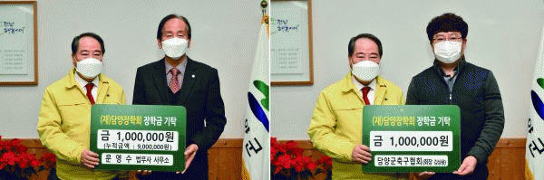 [¹Ìµð¾îÀü³² Á¦°¥´ëÁ¾ ±âÀÚ] ´ã¾çÀÇ ÀÎÀçµéÀ» À§ÇÑ ÀåÇÐ±Ý ±âŹÀÌ ¿¬¸»¿¡µµ ²ÙÁØÈ÷ À̾îÁö¸é¼ Áö¿ªÀ» ÈÆÈÆÇÏ°Ô Çϰí ÀÖ´Ù. ´ã¾çÀåÇÐȸ¿¡ µû¸£¸é, Áö³ 30ÀÏ ¹®¿µ¼ö ¹ý¹«»ç¿Í ´ã¾ç±ºÃ౸Çùȸ°¡ °¢°¢ 100¸¸¿øÀÇ ÀåÇбÝÀ» ±âŹÇß´Ù°í ÀüÇß¡¦