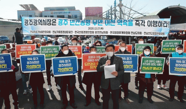 [¹Ìµð¾îÀü³² Á¦°¥´ëÁ¾ ±âÀÚ] Àü³²Áö¿ª ȯ°æ¡¤»ê¸² 5°³ ´Üü´Â 17ÀÏ À̿뼷 ±¤ÁÖ±¤¿ª½ÃÀåÀÇ ¸» ¹Ù²Ù±â ÇàŸ¦ °·ÂÈ÷ ºñÆÇÇÏ´Â ¡®2021³â ¹Î°£°øÇ× ÅëÇÕ ¾à¼Ó ÀÌÇ࡯ Ã˱¸ ¼º¸í¼¸¦ ¹ßÇ¥Çß´Ù. À̳¯ ¼øÃµ ¾Æ·§Àå ¾ß¿Ü¹«´ë¿¡¼ °¡Áø ¼º¸í ¹ß¡¦