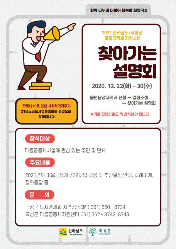 [¹Ìµð¾îÀü³² Á¦°¥´ëÁ¾ ±âÀÚ] °î¼º±º ¸¶À»°øµ¿Ã¼ Áö¿ø¼¾ÅͰ¡ ´Ù°¡¿À´Â 2021³â ¸¶À»°øµ¿Ã¼ Ȱµ¿Áö¿ø °ø¸ð»ç¾÷À» È«º¸Çϱâ À§ÇØ¡°Ã£¾Æ°¡´Â ¼³¸íȸ¡±¸¦ °³ÃÖÇÑ´Ù. ¸¶À»°øµ¿Ã¼ Ȱµ¿Áö¿ø»ç¾÷À̶õ ÁֹεéÀÌ °øµ¿ÀÇ ¸¶À»ÀÇÁ¦¿Í Áö¿ª Çö¾È¹®Á¦¸¦ ¡¦