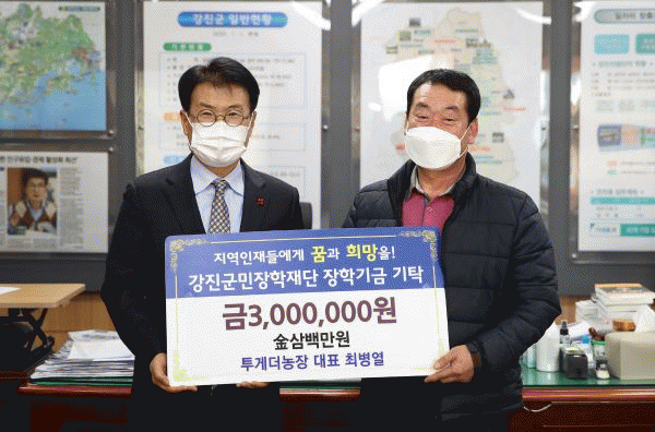 [¹Ìµð¾îÀü³² Á¦°¥´ëÁ¾ ±âÀÚ] Áö³ 11ÀÏ Àü³² °Áø Åõ°Ô´õ³óÀå ÃÖº´¿ ´ëÇ¥°¡ 300¸¸¿øÀÇ ÀåÇбÝÀ» °Áø±º¹ÎÀåÇÐÀç´Ü¿¡ ±âŹÇß´Ù. Åõ°Ô´õ³óÀåÀº °Áø±º¿¡¼ ÁýÁßÀ°¼º ÁßÀÎ »þÀθӽºÄ¹ Æ÷µµ³óÀåÀÌ´Ù. 0.5ha ±Ô¸ðÀÇ ºñ°¡¸² ½Ã¼³ÀÌ¸ç °ü³»¡¦