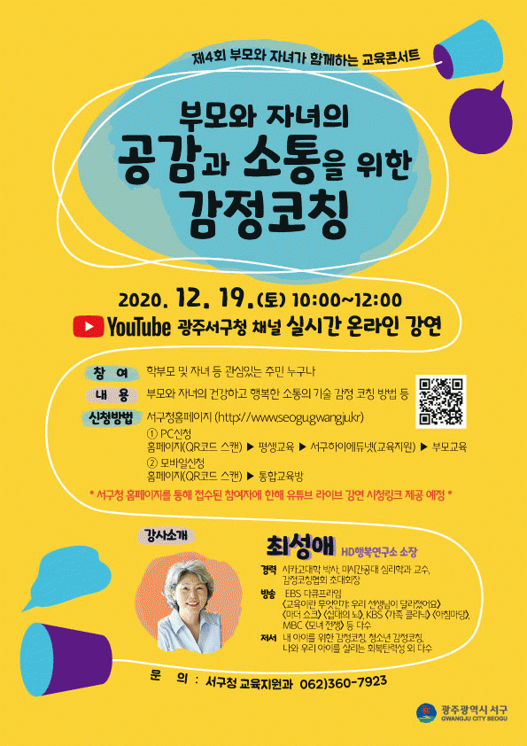 [¹Ìµð¾îÀü³² ±èÁ¤¿ì ±âÀÚ] ±¤ÁÖ ¼±¸°¡ ¿À´Â 19ÀÏ ¿ÀÀü10½Ã ¼±¸Ã» 2Ãþ ´ëȸÀǽǿ¡¼ Á¦4ȸ ºÎ¸ð¿Í Àڳడ ÇÔ²²ÇÏ´Â ±³À°ÄܼƮ¸¦ °³ÃÖÇÑ´Ù. À̹ø ±³À°ÄܼƮ´Â ±¤ÁÖ¼±¸Ã» À¯Æ©ºê ä³ÎÀ» ÅëÇÑ ½Ç½Ã°£¿Â¶óÀÎ °¿¬À¸·Î HDÇູ¿¬±¸¼Ò ¼ÒÀ塦