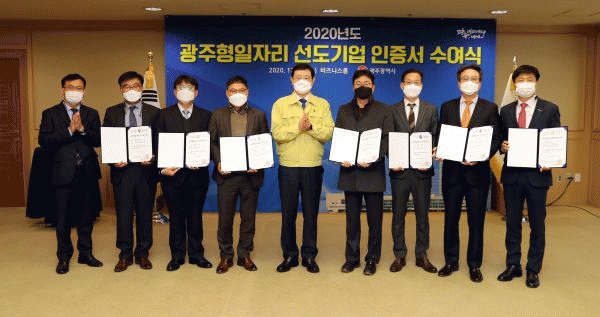 [¹Ìµð¾îÀü³² Á¦°¥´ëÁ¾ ±âÀÚ] ±¤ÁÖ±¤¿ª½Ã´Â 16ÀÏ ½Ãû ºñÁî´Ï½º·ë¿¡¼ 2020³â ±¤ÁÖÇüÀÏÀÚ¸® ÀÎÁõ±â¾÷ 7°³»ç¿¡ ´ëÇØ ÀÎÁõ¼¸¦ ¼ö¿©Çß´Ù. ±¤ÁÖÇüÀÏÀÚ¸® ±â¾÷ ÀÎÁõÀº ÀûÁ¤ÀÓ±Ý, ÀûÁ¤±Ù·Î½Ã°£, ³ë»çÃ¥ÀӰ濵, ¿ø¡¤ÇÏû°ü°è °³¼±ÀÇ 4´ë ÁöÇ¥¡¦