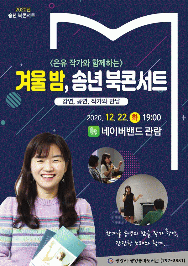 [¹Ìµð¾îÀü³² ÀüÇü¼º ±âÀÚ] ±¤¾çÁ߸¶µµ¼°üÀÌ ¿¬¸»À» ¸Â¾Æ ¿À´Â 12¿ù 22ÀÏ 19½Ã ½Ã¹ÎµéÀ» ´ë»óÀ¸·Î ¡®°Ü¿ï ¹ã, ¼Û³â ºÏÄܼƮ¡¯¸¦ ³×À̹ö¹êµå¿¡¼ ¶óÀÌºê¹æ¼ÛÀ¸·Î ÁøÇàÇÑ´Ù°í ¹àÇû´Ù. À̹ø °ø¿¬Àº Äڷγª19 Àå±âÈ·Î ÁöÄ£ ½Ã¹Îµé¿¡°Ô Áñ°Å¡¦