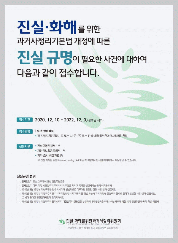[¹Ìµð¾îÀü³² Á¦°¥´ëÁ¾ ±âÀÚ] Àü³² ±¸·Ê±ºÀº Áö³ 2020³â 6¿ù 9ÀÏ °³Á¤ °øÆ÷µÈ Áø½Ç¡¤ÈÇØ¸¦ À§ÇÑ °ú°Å»çÁ¤¸® ±âº»¹ýÀÌ Áö³ 10ÀϺÎÅÍ ½ÃÇàµÊ¿¡ µû¶ó Áø½Ç¡¤ÈÇØ¸¦ À§ÇÑ °ú°Å»çÁ¤¸®À§¿øÈ¸ Ȱµ¿ÀÌ Àç°³µÇ¾î Áø½Ç±Ô¸í ½Åû¡¤Á¢¼ö¸¦ º»°Ý ÃßÁø¡¦
