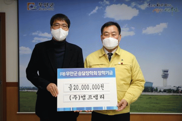 [¹Ìµð¾îÀü³² Á¦°¥´ëÁ¾ ±âÀÚ] ¹«¾È±ºÀº 12¿ù 10ÀÏ ÁÖ½Äȸ»ç Ä·ÇÁ¹ë¸®¿¡¼ ÀåÇÐ±Ý 2000¸¸¿ø, ¹«¾È±º°ÇÃà»çÇùȸ¿¡¼ ÀåÇÐ±Ý 300¸¸¿øÀ» ¹«¾È±º½Â´ÞÀåÇÐȸ¿¡ ±âŹÇß´Ù°í ¹àÇû´Ù. Ä·ÇÁ¹ë¸®ÀÇ ÀåÇÐ±Ý ±âŹÀº Áö³ 1¿ù 1000¸¸¿ø¿¡ ÀÌ¾î ¿ÃÇØ µÎ¡¦