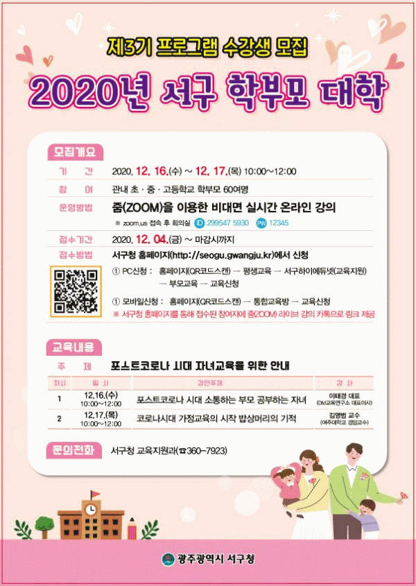 [¹Ìµð¾îÀü³² ±èÁ¤¿ì ±âÀÚ] ±¤ÁÖ ¼±¸¿¡¼´Â ¿À´Â 15ÀϱîÁö 2020³â¡®Á¦3±â ¼±¸ Çкθð ´ëÇС¯¼ö°»ýÀ» ¸ðÁýÇÑ´Ù. ¡®Æ÷½ºÆ®Äڷγª ½Ã´ë Àڳ౳À°À» À§ÇÑ ¾È³»¡¯ÁÖÁ¦·Î ÁøÇàµÇ´Â À̹ø ÇÁ·Î±×·¥Àº ÁÜÀ» ÀÌ¿ëÇÑ ºñ´ë¸é ½Ç½Ã°£ ¿Â¶óÀÎ °úÁ¤À¸¡¦