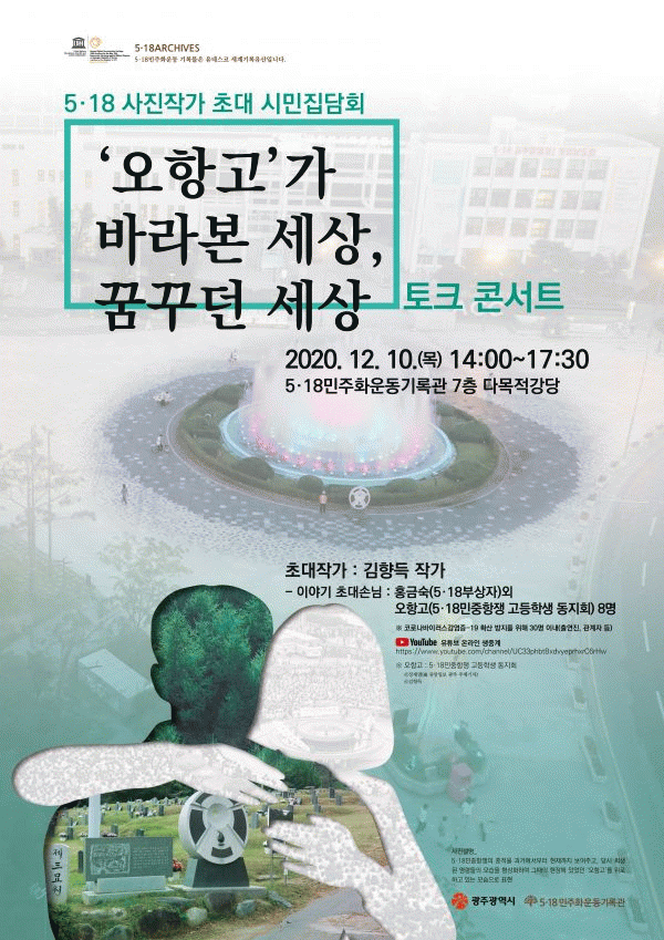 [¹Ìµð¾îÀü³² Á¦°¥´ëÁ¾ ±âÀÚ] 5¡¤18¹ÎÁÖȿ±â·Ï°üÀº ¼¼°è À뱂 ¼±¾ðÀÏÀ» ¸Â¾Æ 10ÀÏ ¿ÀÈÄ 2½Ã 5¡¤18±â·Ï°ü ´Ù¸ñÀû°´ç¿¡¼ ¡®5¡¤18¹ÎÁßÇ×Àï °íµîÇлý µ¿Áöȸ¡¯, À̸¥¹Ù ¡®¿ÀÇ×°í¡¯¸¦ Á¶¸íÇÏ´Â ½Ã¹ÎÁý´ãȸ¸¦ °³ÃÖÇÑ´Ù. 5¡¤18 40ÁÖ³âÀ» ¡¦