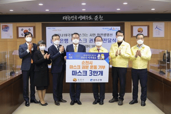 [¹Ìµð¾îÀü³² ÀüÇü¼º ±âÀÚ] ¼øÃµ½Ã´Â Áö³ 1ÀÏ ¼øÃµ °ü³» ³óÇù, ½ÅÇÑÀºÇà, ±¤ÁÖÀºÇà¿¡¼ ¸¶½ºÅ© ±ÇºÐ¿îµ¿¿¡ Âü¿©ÇØ KF-94 ¸¶½ºÅ© 18¸¸ÀåÀ» Àü´Þ¹Þ¾Ò´Ù. À̹ø ¸¶½ºÅ© Àü´ÞÀº ½ÅÇÑÀºÇà 10¸¸Àå, ¼øÃµ°ü³»³óÇù 5¸¸Àå, ±¤ÁÖÀºÇà 3¸¸ÀåÀ» ±âºÎ¡¦
