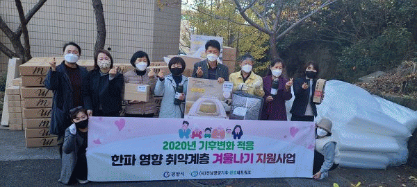 [¹Ìµð¾îÀü³² ÀüÇü¼º ±âÀÚ] ±¤¾ç½Ã´Â Àü³²±¤¾ç±âÈÄȯ°æ³×Æ®¿öÅ©¿¡¼ ±âÈĺ¯È ´ëÀÀ»ç¾÷ÀÇ ÀÏȯÀ¸·Î ÇÑÆÄ¿µÇâ Ãë¾à°èÃþ 80°¡±¸¿¡ ¹æÇѹ°Ç°À» Áö¿øÇÑ´Ù°í ¹àÇû´Ù. ÇÑÆÄ ¿µÇâ Ãë¾à°èÃþ °Ü¿ï³ª±â Áö¿ø»ç¾÷Àº Çѱ¹±âÈÄȯ°æ³×Æ®¿öÅ©¿¡¼ Àü±¹ ¡¦