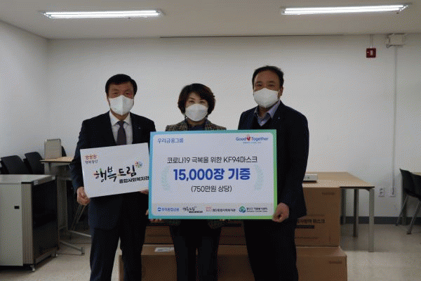 [¹Ìµð¾îÀü³² ±èÁ¤¿ì ±âÀÚ] ¿ì¸®Á¾ÇÕ±ÝÀ¶°¡ Áö³ 24ÀÏ Äڷγª19·Î ¾î·Á¿òÀ» °Þ°í ÀÖ´Â ¼Ò¿Ü°èÃþ¿¡°Ô ³ª´²´Þ¶ó¸ç ±¤»ê±¸ Çູµå¸²Á¾ÇÕ»çȸº¹Áö°ü¿¡ ¹æ¿ª¸¶½ºÅ© 15,000ÀåÀ» ±âºÎÇß´Ù. ±èÁ¾µæ ´ëÇ¥ÀÌ»ç´Â ¡°ÃÖ±Ù Äڷγª19 Àç È®»êÀ¸·Î Áö¿ª¡¦