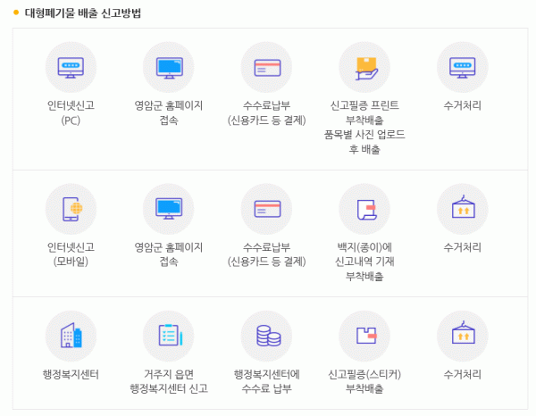 [¹Ìµð¾îÀü³² ±è±âö ±âÀÚ] ¿µ¾Ï±ºÀº ÁֹΠÆíÀǸ¦ À§ÇØ ´ëÇüÆó±â¹° ¹èÃâ ÀÎÅÍ³Ý ¹× ¸ð¹ÙÀÏ Á¢¼ö ½Ã½ºÅÛÀ» ¿À´Â 20ÀϺÎÅÍ º»°Ý ½ÃÇàÇÑ´Ù. ±×µ¿¾È ±âÁ¸ ´ëÇüÆó±â¹° ¹èÃâÀº ¾÷¹«½Ã°£ ³» À¾¡¤¸é»ç¹«¼Ò¸¦ Á÷Á¢ ¹æ¹®ÇØ ½Åû¼¸¦ ÀÛ¼ºÇϰí ÇöÀå ¡¦