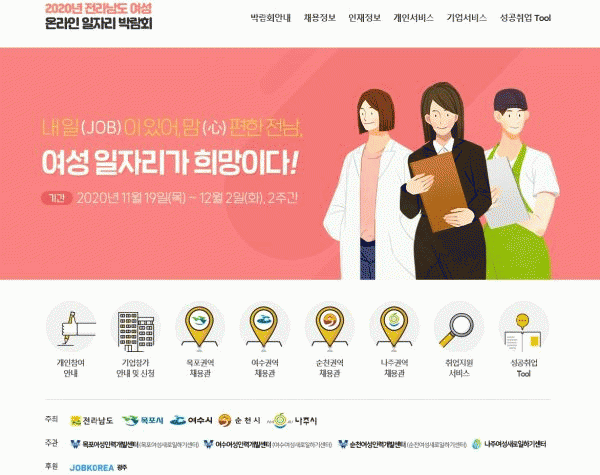 [¹Ìµð¾îÀü³² Á¦°¥´ëÁ¾ ±âÀÚ] Àü¶ó³²µµ°¡ ¿À´Â 19ÀϺÎÅÍ 12¿ù 2ÀϱîÁö ¡®2020 Àü³² ¿©¼º ¿Â¶óÀÎ ÀÏÀÚ¸® ¹Ú¶÷ȸ¡¯¸¦ °³ÃÖÇÑ´Ù. À̹ø ¹Ú¶÷ȸ´Â Äڷγª19 Àå±âÈ·Î ÀÎÇØ ¿©¼ºÀη¿¡ ´ëÇÑ °í¿ëÀýº®ÀÌ ½Éȵǰí ÀÖ´Â Çö½ÇÀ» ¿ÏÈÇϱâ À§ÇØ ¸¶·Ã¡¦