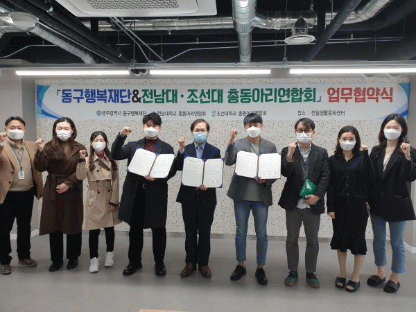 [¹Ìµð¾îÀü³² ±èÁ¤¿ì ±âÀÚ] ±¤ÁÖ µ¿±¸´Â ±¤ÁÖÁö¿ª µ¿¾Æ¸® Ȱ¼ºÈ¸¦ À§ÇØ µ¿±¸ÇູÀç´Ü°ú Àü³²´ëÇб³¡¤Á¶¼±´ëÇб³ µ¿¾Æ¸® ¿¬ÇÕȸ°¡ ¾÷¹«Çù¾àÀ» ÃßÁøÇß´Ù°í 18ÀÏ ¹àÇû´Ù. Àç´ÜÀº Àü³²´ë, Á¶¼±´ëÀÇ 140¿© °³ÀÇ ´Ù¾çÇÑ ºÐ¾ßÀÇ µ¿¾Æ¸®¿Í Çù¾à¡¦