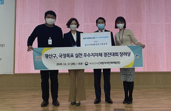 [¹Ìµð¾îÀü³² ±èÁ¤¿ì ±âÀÚ] ±¤ÁÖ ±¤»ê±¸°¡ Áö³ 17ÀÏ ÀüºÏ ¿ÏÁÖ ÀÚÄ¡ÀÎÀç¿ø¿¡¼ °³ÃÖµÈ ¡®2020³â ±¹Á¤¸ñÇ¥ ½Çõ ¿ì¼ö ÁöÀÚü °æÁø´ëȸ¡¯¿¡¼ Àå·Á»óÀ» ¼ö»óÇß´Ù. ÇàÁ¤¾ÈÀüºÎ Áö¹æÀÚÄ¡ÀÎÀç°³¹ß¿ø¡¤Çѱ¹Áö¹æÇàÁ¤¿¬±¸¿øÀÌ ÁÖ°üÇÑ À̹ø °æÁø´ë¡¦