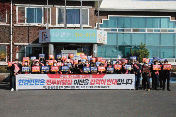 [¹Ìµð¾îÀü³² Á¦°¥´ëÁ¾ ±âÀÚ] ¹«¾È±º Çö°æ¸é ±¤ÁÖ ±º°øÇ× ÀÌÀü ¹Ý´ë ´ëÃ¥À§¿øÈ¸´Â Áö³ 11ÀÏ Çö°æ¸é»ç¹«¼Ò ¾Õ¿¡¼ Çö°æ¸é »çȸ´Üü¿Í ÁֹΠµî 70¿©¸íÀÌ Âü¼®ÇÑ °¡¿îµ¥ ±¤ÁÖ ±º°øÇ× ¹«¾È ÀÌÀü ¹Ý´ë °áÀÇ´ëȸ¸¦ °¡Á³´Ù. À̳¯ °áÀÇ´ëȸ´Â ±¤¡¦
