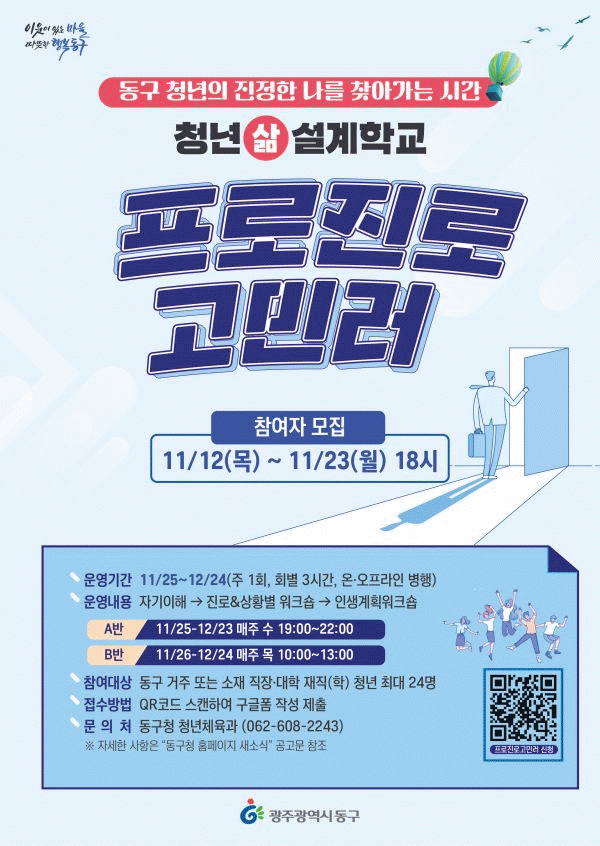 [¹Ìµð¾îÀü³² ±èÁ¤¿ì ±âÀÚ] ±¤ÁÖ µ¿±¸°¡ û³âµé ½º½º·Î°¡ ÁÖüÀûÀÎ »îÀ» °èȹÇÒ ¼ö ÀÖ´Â ±âȸ¸¦ È®´ëÇϱâ À§ÇÑ ¡®µ¿±¸ û³â »î ¼³°èÇб³, ÇÁ·ÎÁø·Î °í¹Î·¯¡¯ Âü¿©ÀÚ¸¦ ¿À´Â 23ÀϱîÁö ¸ðÁýÇÑ´Ù°í ¹àÇû´Ù. À̹ø ÇÁ·ÎÁ§Æ®´Â ÁÖ¹ÎÂü¿©¿¹»ê û¡¦